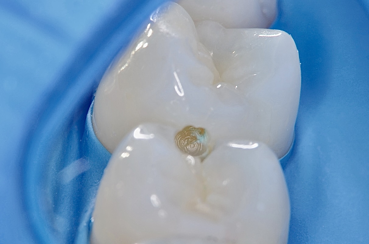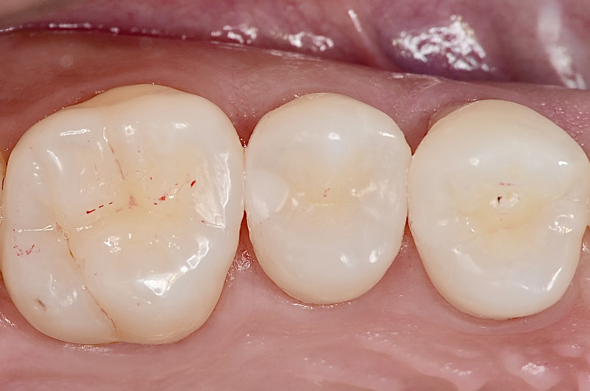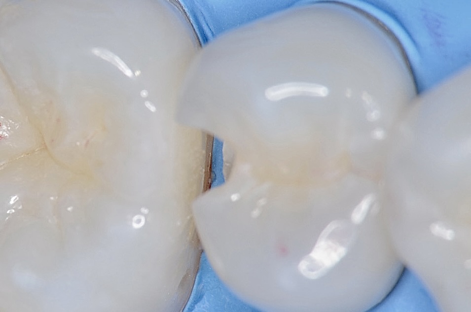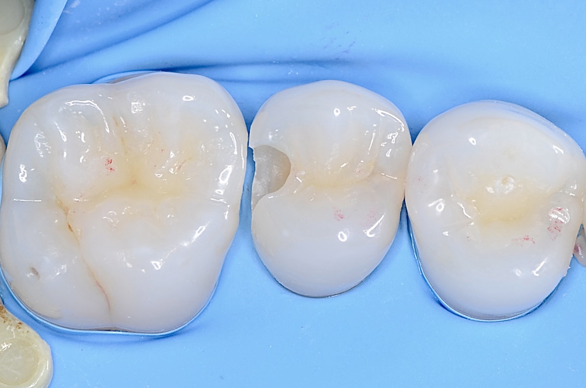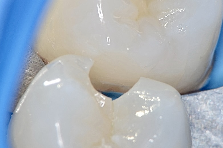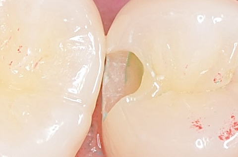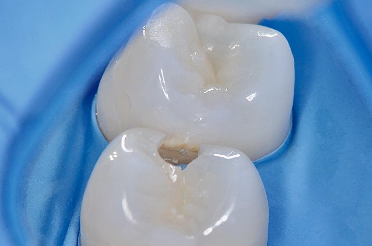 歯軋り食いしばりが強く、歯に微小な亀裂が入ってそこから虫歯になったようです。