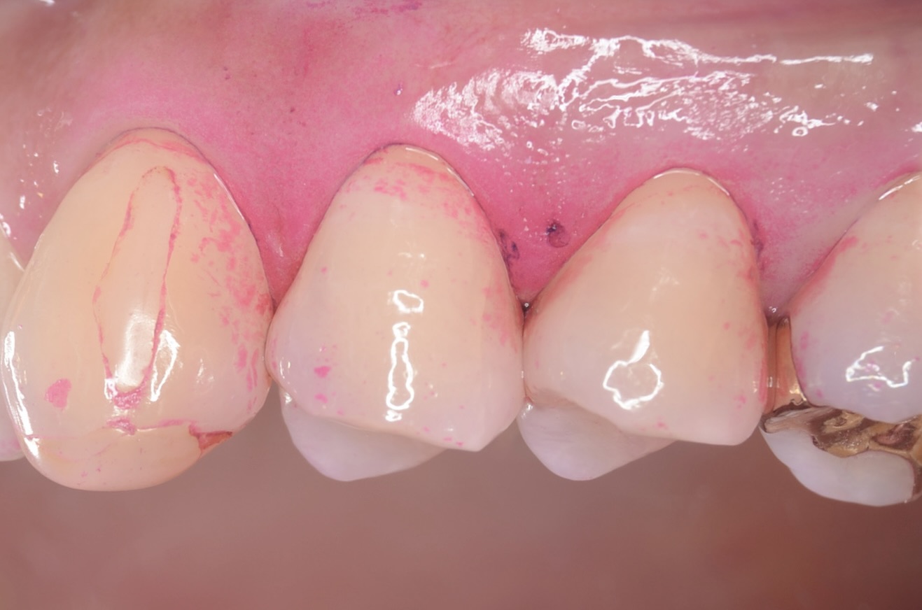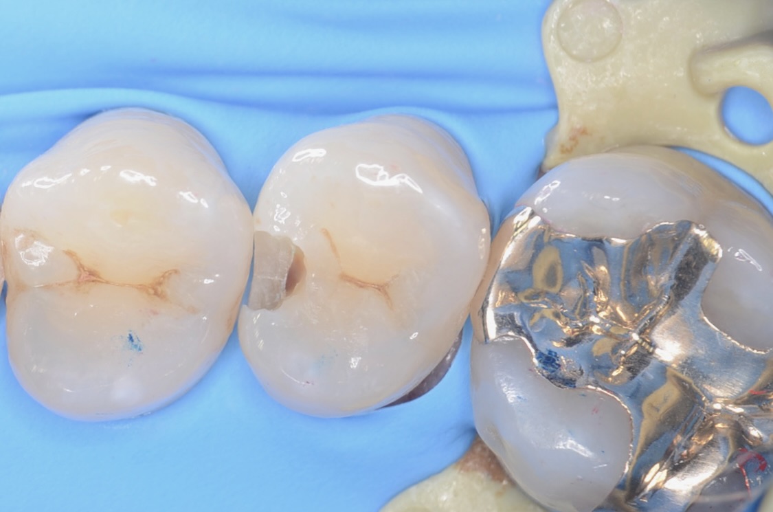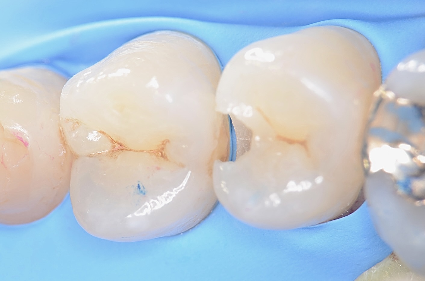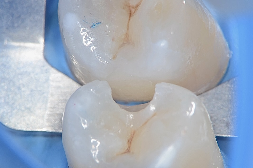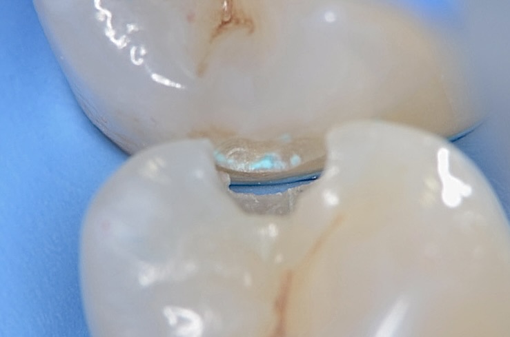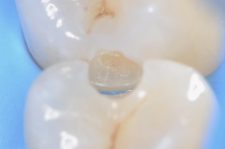 4番5番の歯間をセパレーターで強制的に広げて 滑らかな曲線をレジンで造形していきます。 -