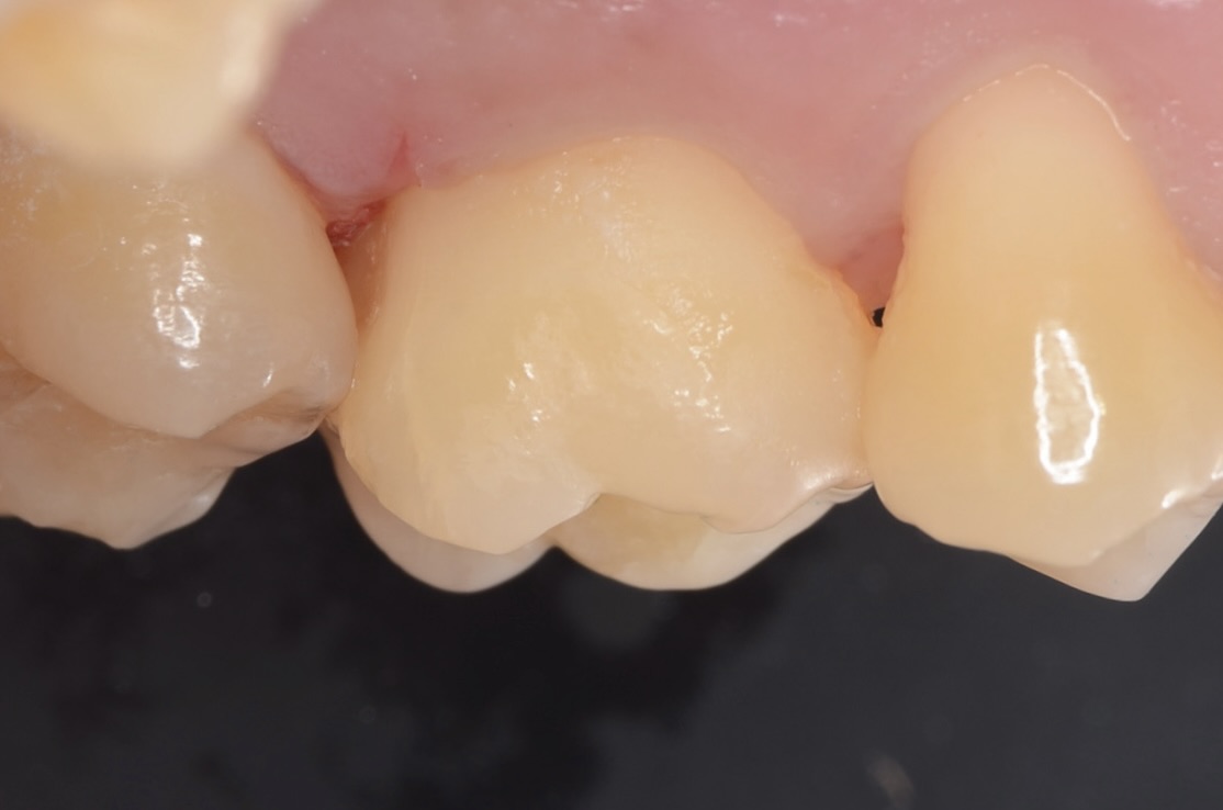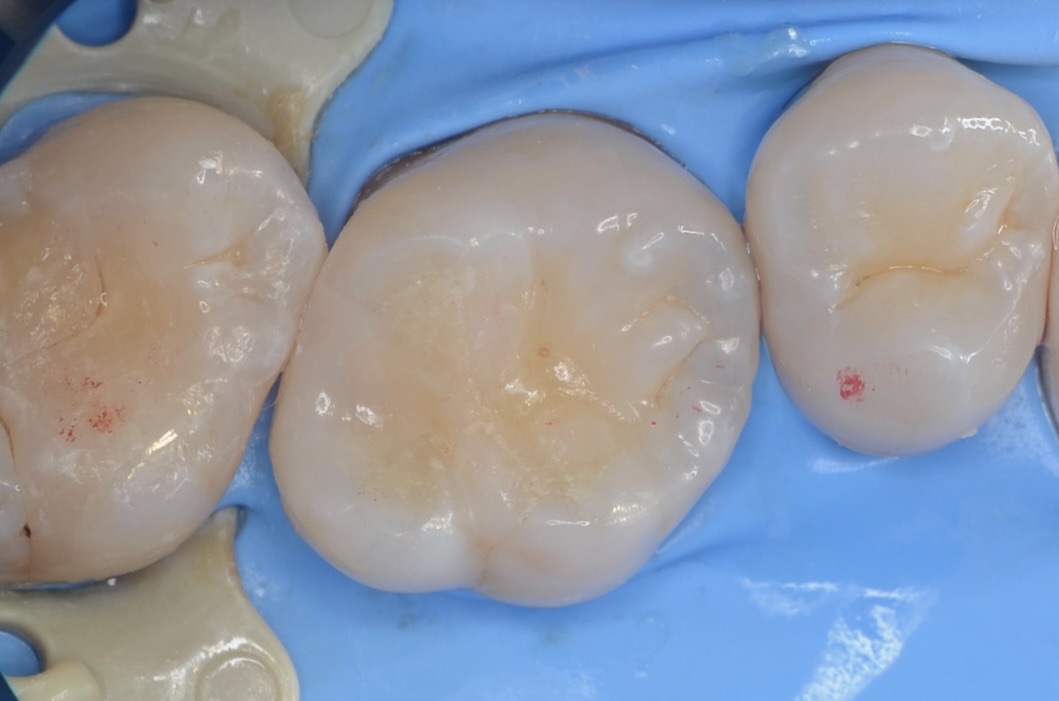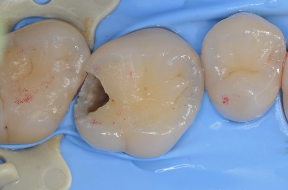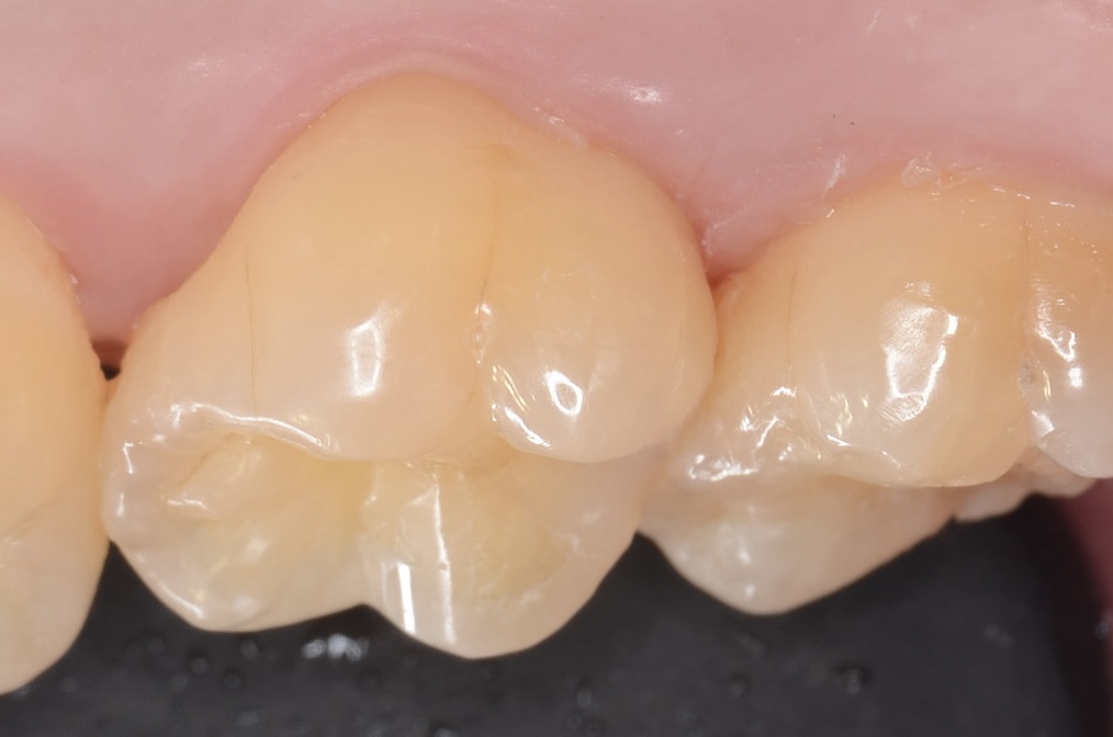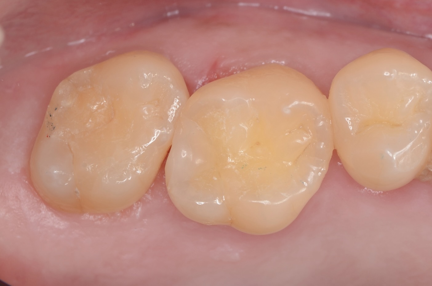 噛む力が強く以前治したレジン10点が壊れていました。強度で考えるならジルコニアインレーですが歯を削る量を少なくしたい希望があったので、今回はダイレクトボンディングで治すことにしました。 -