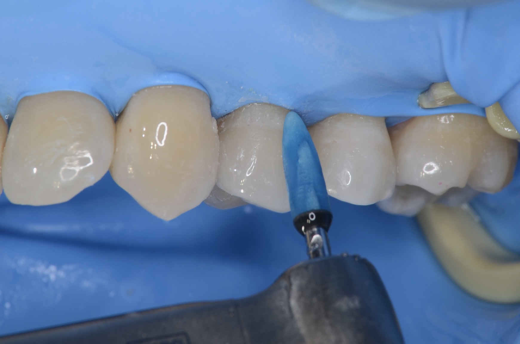 ひたすら丁寧に、セラミックの境目を研磨しています。研磨に時間をかける。接着すれば終わりではなくここも大切なポイントです。 -
