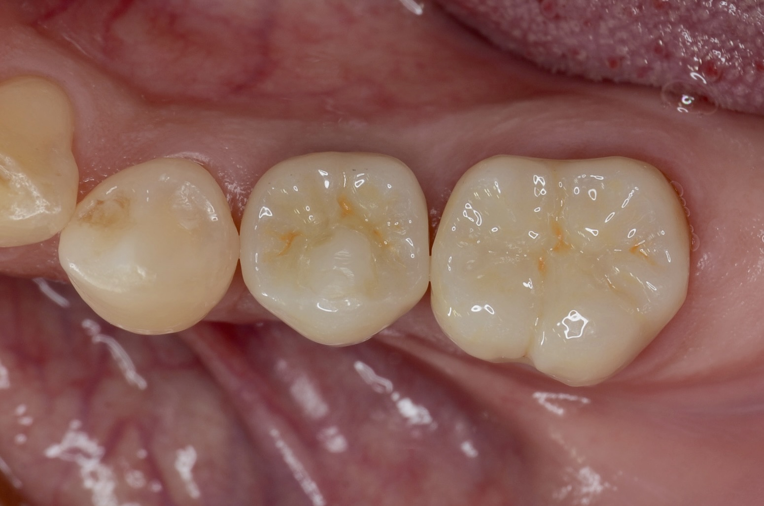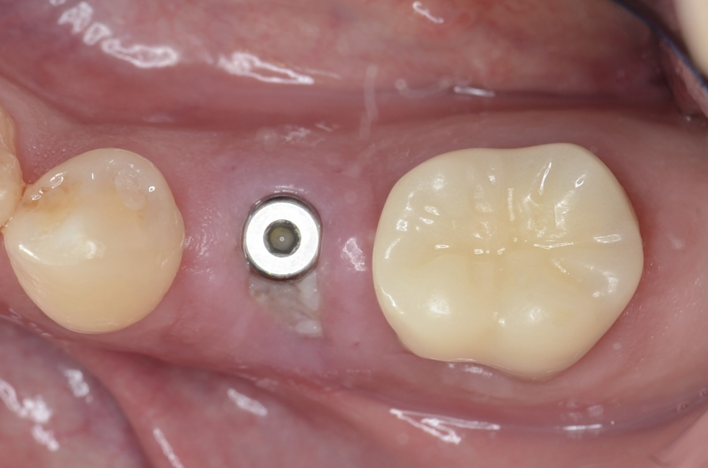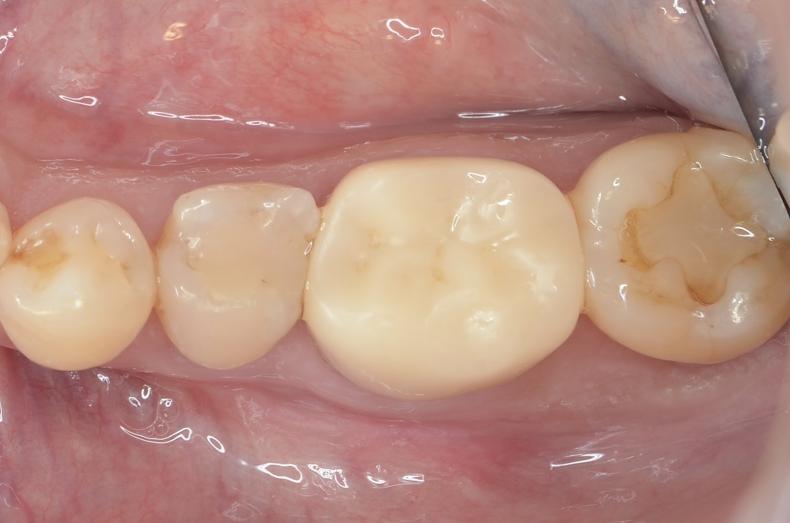 インプラントのアクセスホールをレジンで埋めて、7番にジルコニアクラウンが入りました。 -