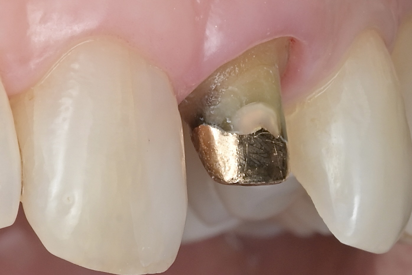 クラウンをセットする直前の歯肉です。健康な歯肉こそ審美的な前歯に必要です。 -