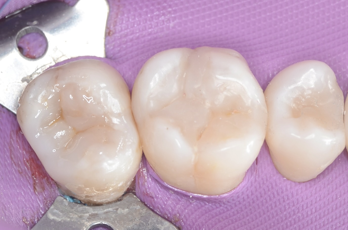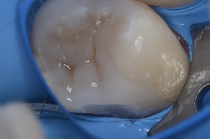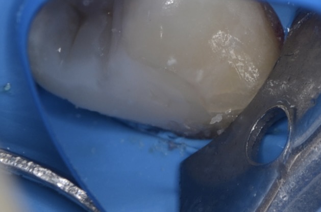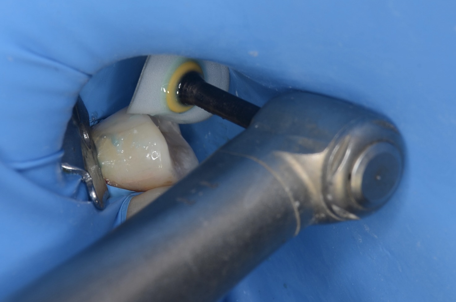 虫歯治療においてもラバーダム装着は必須です。 唾液や血液から歯面が汚染されるのを防ぎ、乾燥状態を保つラバーダムは、接着力を向上させるためにも大切なアイテムです。 -