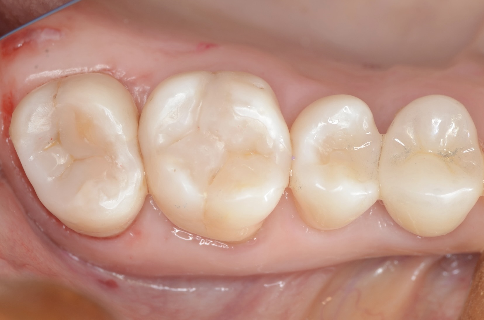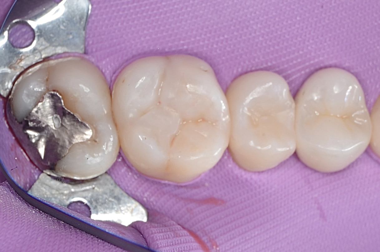 段差なくピッタリしていることがわかります。磨きにくい上の奥歯の後ろ側だからこそ、ツルツルにしなければいけません。