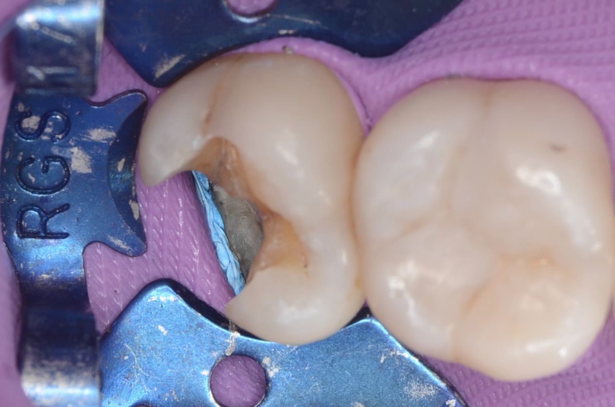 インレーの下にアマルガム充填を発見しました。これも除去します -