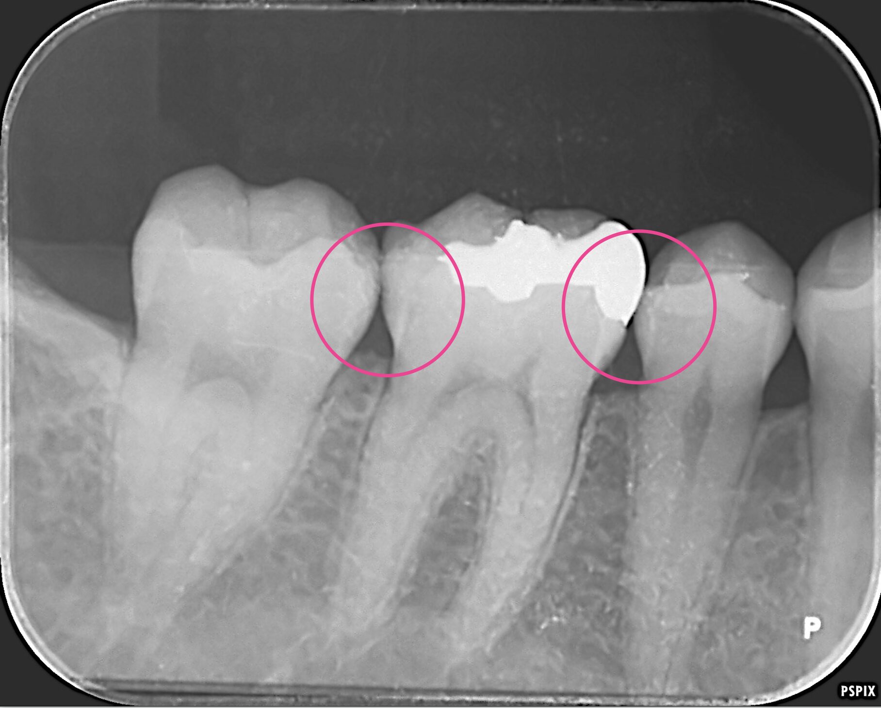 銀歯のある歯の前後の歯にも虫歯があります。 -
