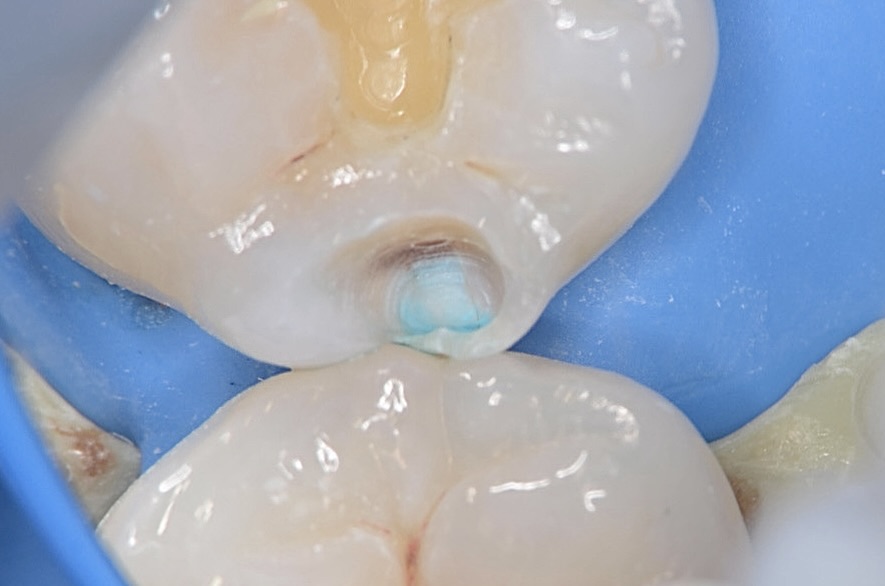 虫歯が齲蝕検知液で青く染まります。 -